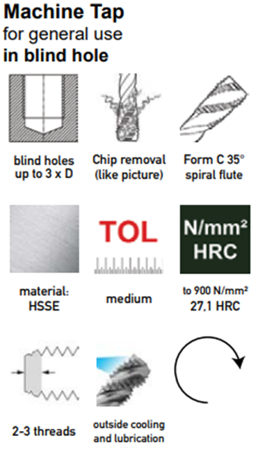 Macho máquina helicoidal HSSE p/aceros-uso general – BSW 1.1/2 x 6 – DIN 376